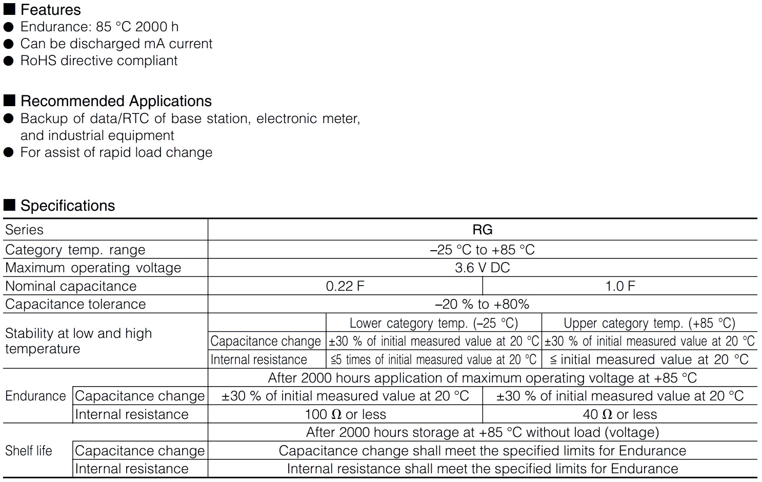 סופר קבל - THROUGH HOLE - 0.22F - 3.6V PANASONIC