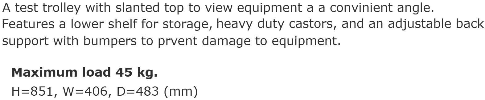 | 5944824 עגלת שינוע לציוד בדיקה ומכשירי מדידה - 2 מדפים | DURATOOL | עגלת שינוע לציוד בדיקה ומכשירי מדידה - 2 מדפים ♦ מדף עליון מוטה בזווית לצפיה נוחה על צג המכשיר&dia... ציוד בדיקה ומכשירי מדידה » אוסצילוסקופים למעבדה | לא ניתן להזמין - אזל המלאי |