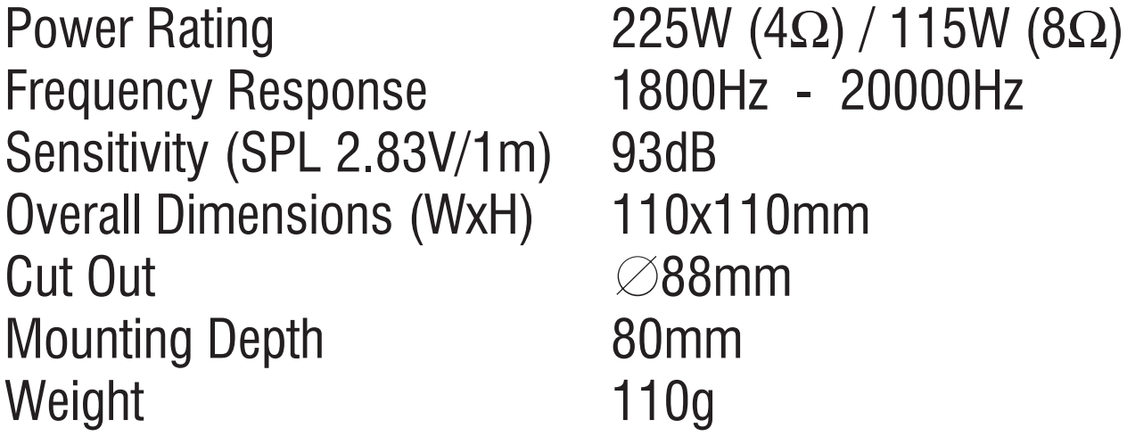 | 9954001 טוויטר - 4OHM~225W / 8OHM~115W - 110X110MM | PRO-SIGNAL | טוויטר - 4OHM~225W / 8OHM~115W - 110X110MM... רכיבי אלקטרוניקה » זמזמים , סירנות ורמקולים | כמות |