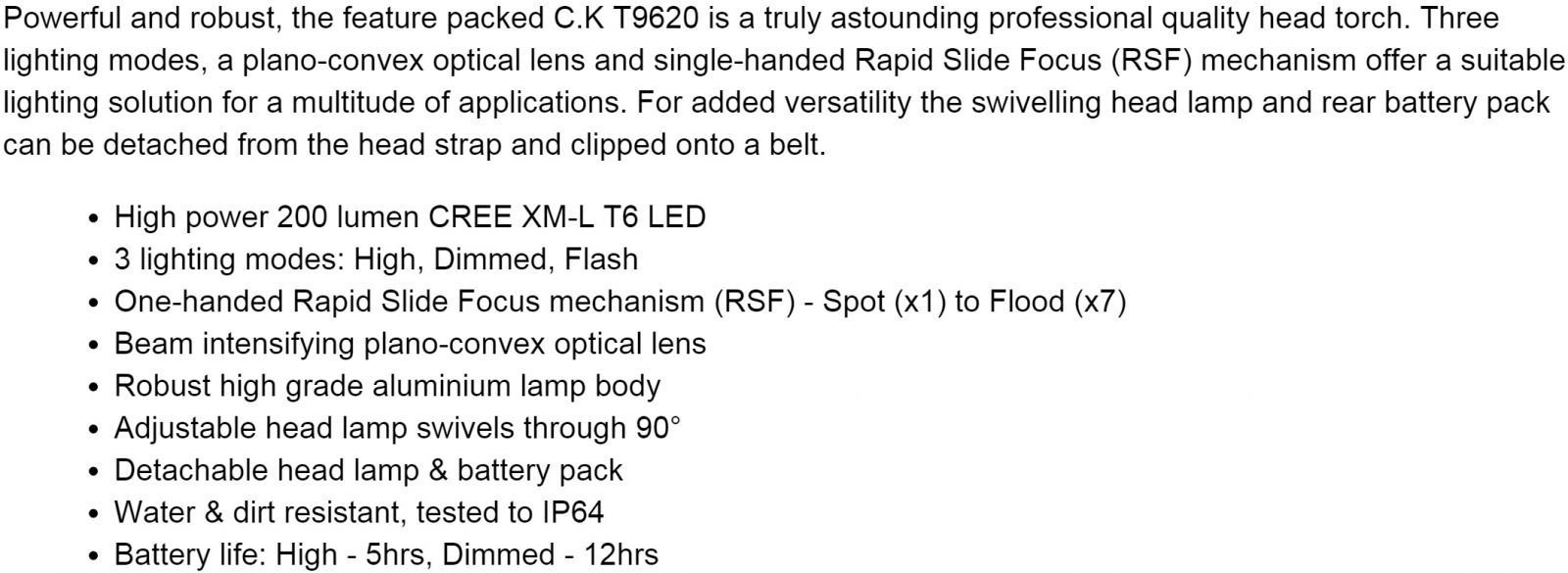 | 0183872 פנס ראש מקצועי - CK TOOLS T9621 - 200 LUMENS | CK TOOLS | פנס ראש מקצועי - CK TOOLS T9621 - 200 LUMENS ♦ עוצמת הארה : 200 לומנס♦ רמת אטימות למים ... נורות , פנסים ומוצרי תאורה » פנסים | כמות |