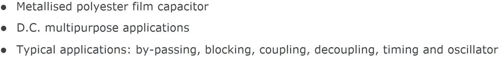 | 9049761 קבל פוליאסטר - 1UF 63VDC | ARCOTRONICS | קבל פוליאסטר 1UF 63VDC ♦ סוג קבל : METALLIZED POLYESTER FILM CAPACITOR♦ טמפרטו... רכיבי אלקטרוניקה » קבלים לאלקטרוניקה | כמות | |