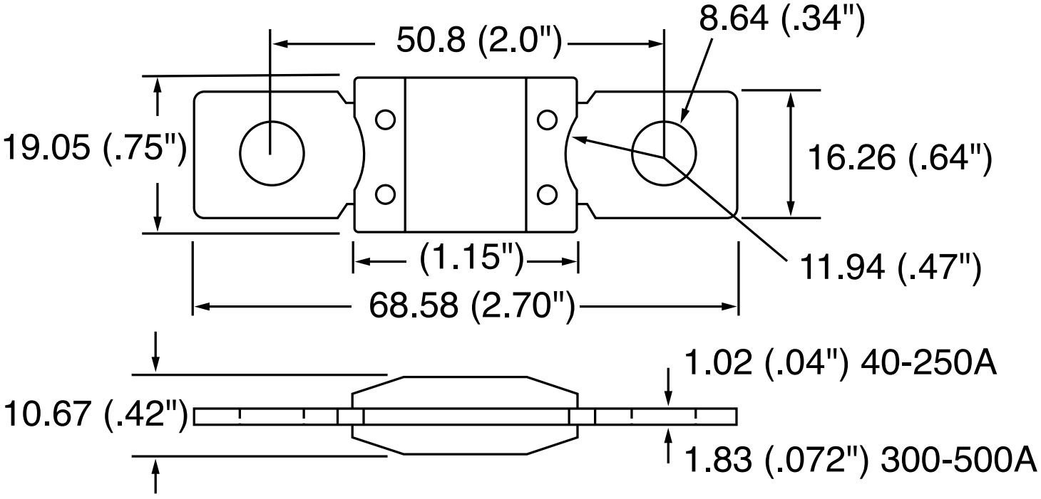 פיוז למצבר - MEGA - SLOW BLOW - 150A 32V