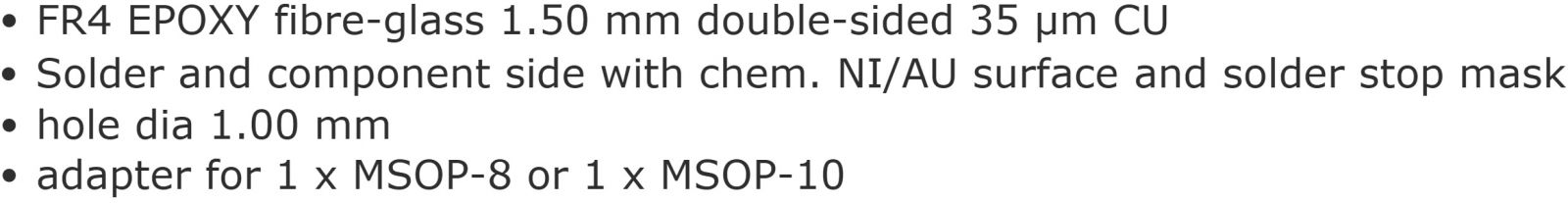 | 1477821 לוח מתאם לרכיבי MSOP-10 ~ DIP - SMD | ROTH ELEKTRONIK | לוח מתאם לרכיבי MSOP-10 ~ DIP - SMD ♦ סוג הלוח : GLASS EPOXY FR4♦ עובי הלוח : ... מוצרי פיתוח לאלקטרוניקה » פתרונות פיתוח לרכיבי SMD | כמות |