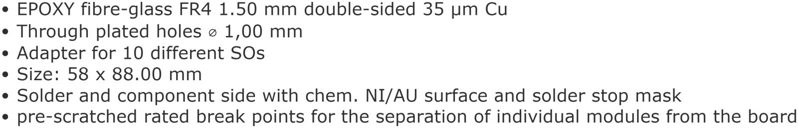 | 9716241 לוח מתאם לרכיבי SOJ-40 ~ DIP - SMD | ROTH ELEKTRONIK | לוח מתאם לרכיבי SOJ-40 ~ DIP - SMD ♦ מרווח בין מגעים : 1.27MM♦ סוג הלוח : GLAS... מוצרי פיתוח לאלקטרוניקה » פתרונות פיתוח לרכיבי SMD | כמות |