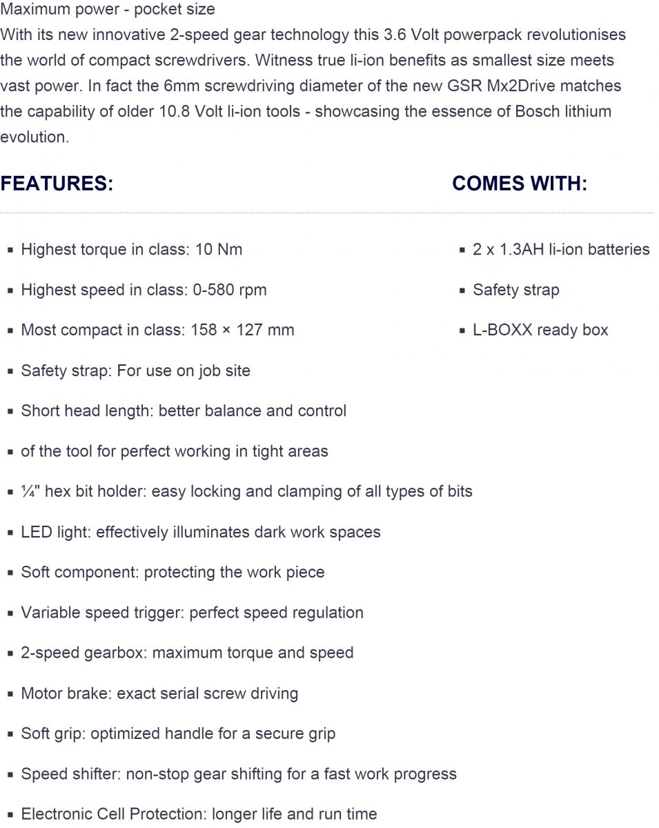 | 1953122 מברגה נטענת מקצועית - BOSCH GSR MX2DRIVE - KIT | BOSCH | מברגה נטענת מקצועית - BOSCH GSR MX2DRIVE - KIT ♦ תאורת LED קדמית♦ מתח עבודה : 3.6V&di... כלי עבודה נטענים / חשמליים » מברגות / מקדחות / פטישונים | לא ניתן להזמין - אזל המלאי |