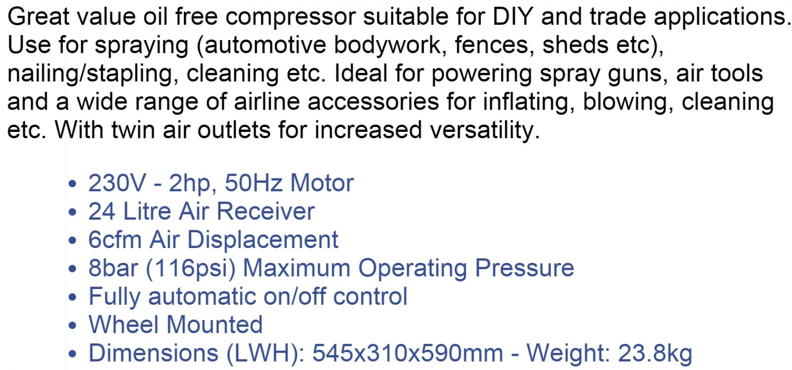 | 3743542 קומפרסור 24 ליטר ללא שמן - RANGER 6/240 | CLARKE | קומפרסור 24 ליטר ללא שמן - RANGER 6/240 ♦ הספק : 2HP♦ לחץ מרבי : 116PSI&d... כלי עבודה נטענים / חשמליים » קומפרסורים , גנרטורים ואביזרים | לא ניתן להזמין - אזל המלאי |