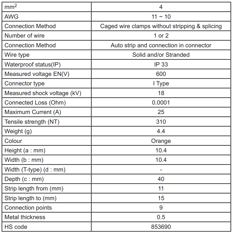מחבר לחיבור חוטים - I-TYPE - 4.0MM²