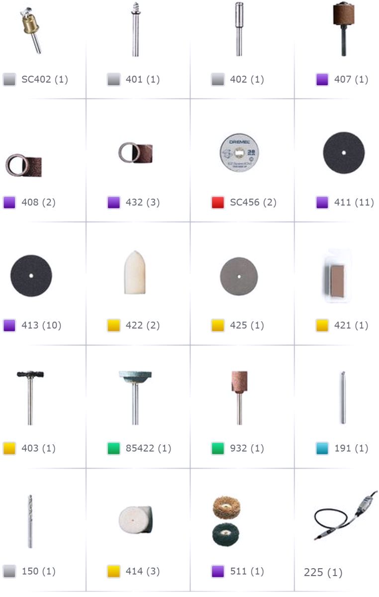 | 0409681 ערכת 165 אביזרים מודולריים למשחזת ציר - DREMEL 722 | DREMEL | ערכת 165 אביזרים מודולריים למשחזת ציר - DREMEL 722 ... כלי עבודה נטענים / חשמליים » משחזות ציר ומולטיטולס | לא ניתן להזמין - אזל המלאי | |