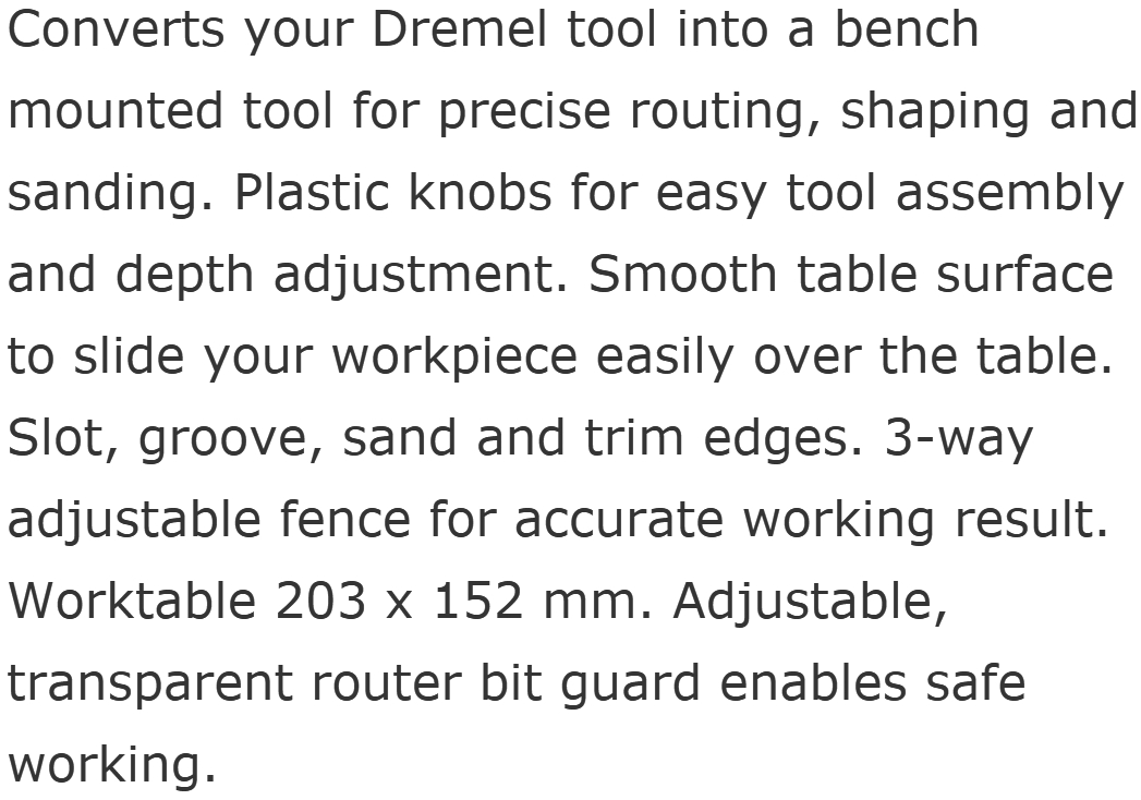 | 8865527 שולחן כרסום ושיוף למשחזת ציר - DREMEL 231 | DREMEL | שולחן כרסום ושיוף למשחזת ציר - DREMEL 231 ♦ דופן מתכווננת לשלושה כיוונים♦ מגן ... כלי עבודה נטענים / חשמליים » משחזות ציר ומולטיטולס | לא ניתן להזמין - אזל המלאי |