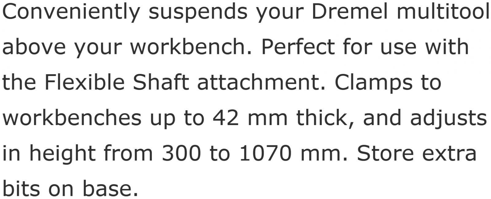 | 3409681 מתקן תליה שולחני למשחזת ציר עם ציר גמיש - DREMEL 2222 | DREMEL | מתקן תליה שולחני למשחזת ציר עם ציר גמיש - DREMEL 2222 ♦ מתאים לשולחנות עם דופן עד 42MM&di... כלי עבודה נטענים / חשמליים » משחזות ציר ומולטיטולס | כמות |