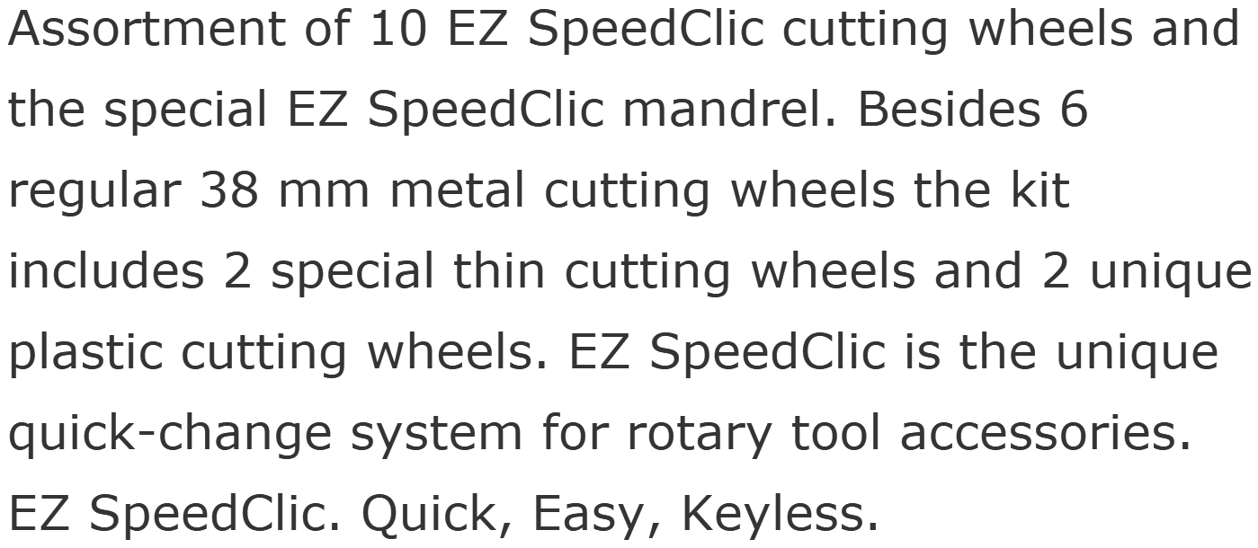 | 3896153 ערכת 10 דיסקיות חיתוך - DREMEL EZ SPEEDCLIC SC690 | DREMEL | ערכת 10 דיסקיות חיתוך - DREMEL EZ SPEEDCLIC SC690 ♦ מתאימה לעבודות חיתוך במתכות ופלסטיק&n... כלי עבודה נטענים / חשמליים » משחזות ציר ומולטיטולס | כמות |