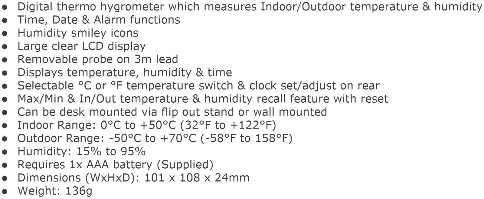 | 5799502 מד טמפרטורה / לחות דיגיטלי עם שעון - פנים / חוץ | PRO-SIGNAL | מד טמפרטורה / לחות דיגיטלי עם שעון - פנים / חוץ ♦ תצוגת שעה , תאריך ושעון מעורר♦&nb... ציוד בדיקה ומכשירי מדידה » מודדי טמפרטורה ולחות | לא ניתן להזמין - אזל המלאי |