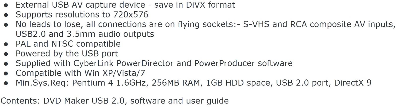 | 2441071 ממיר קלטות וידאו - USB2.0 DVD MAKER | KWORLD | ממיר קלטות וידאו - USB2.0 DVD MAKER ♦ לוכד סיגנל AV וממירו לפורמט MPEG1/2/4 או DIVX♦ תו... Talmir Home Tech » ציוד היקפי למחשבים | לא ניתן להזמין - אזל המלאי |