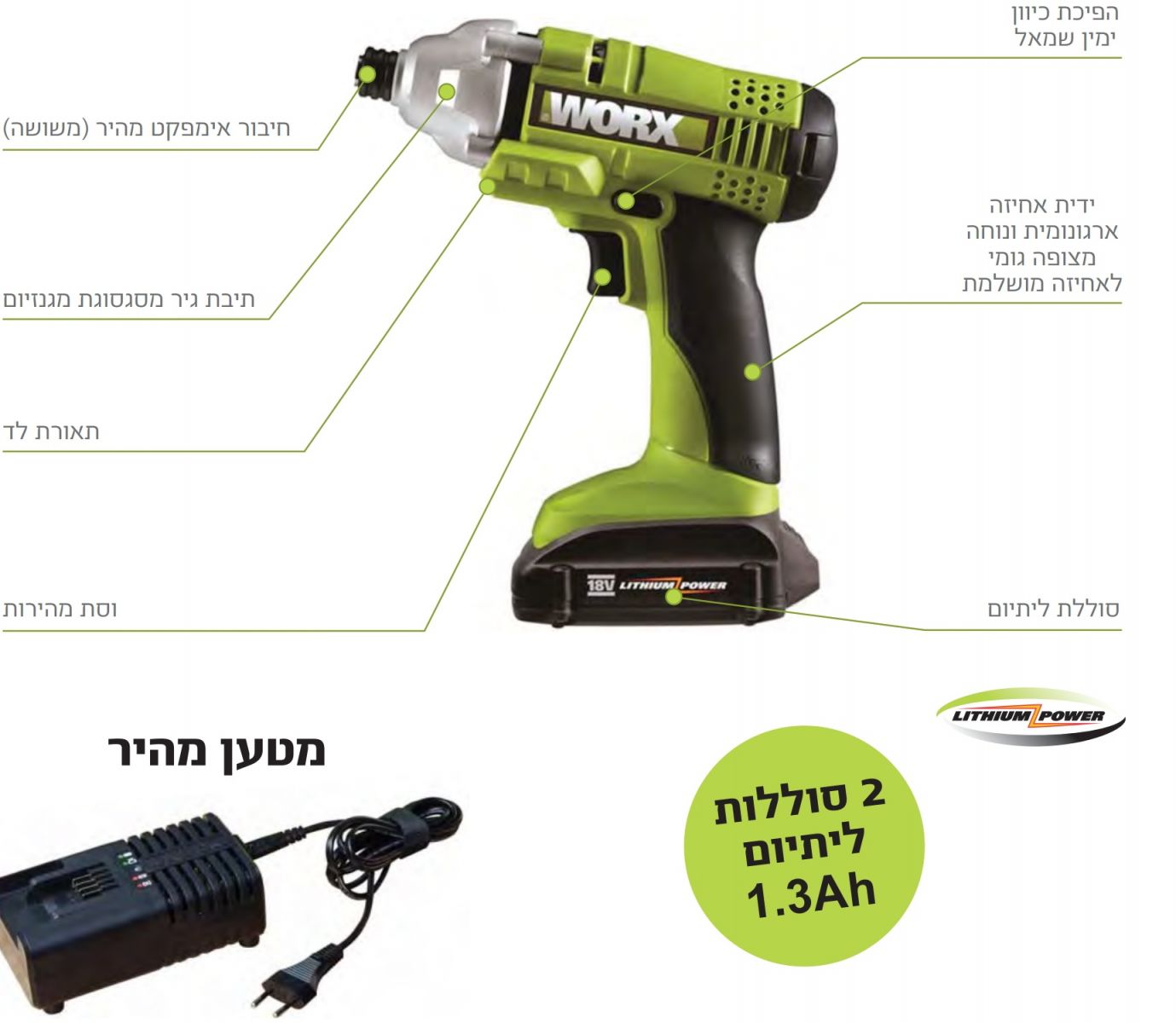מברגה / מקדחה מקצועית נטענת WORX WU289 - 18V WORX PROFESSIONAL ועוד כלי עבודה נטענים / חשמליים. לחצו למיפרט טכני מלא. צרו קשר לייעוץ מקצועי: 04-8520233