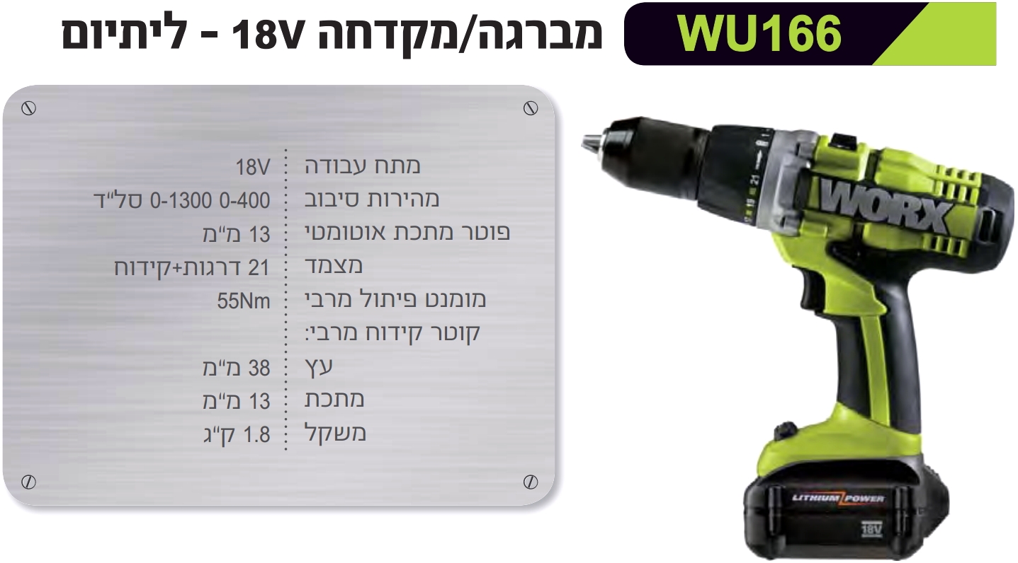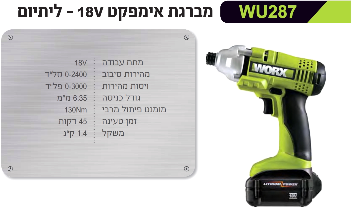 | WU904 קיט מברגות מקצועיות נטענות WORX WU904 - 18V | WORX PROFESSIONAL | קיט מברגות מקצועיות נטענות WORX WU904 - 18V ♦ כולל את הכלים : WU287 , WU166♦ מסופק... כלי עבודה נטענים / חשמליים » מברגות / מקדחות / פטישונים | כמות |
