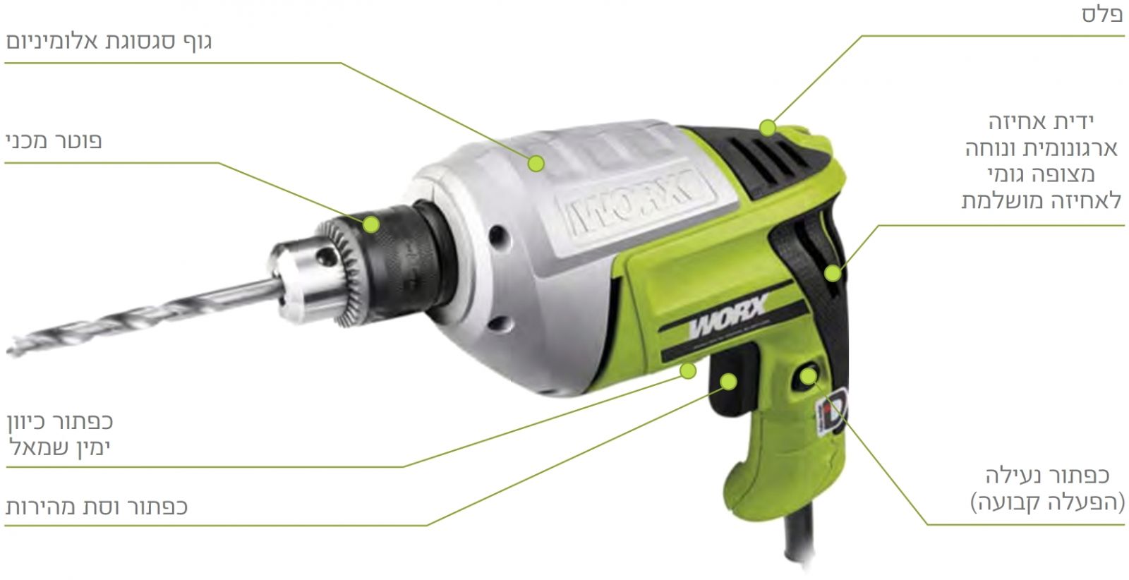 מקדחה חשמלית מקצועית WORX WU100.1 - 500W