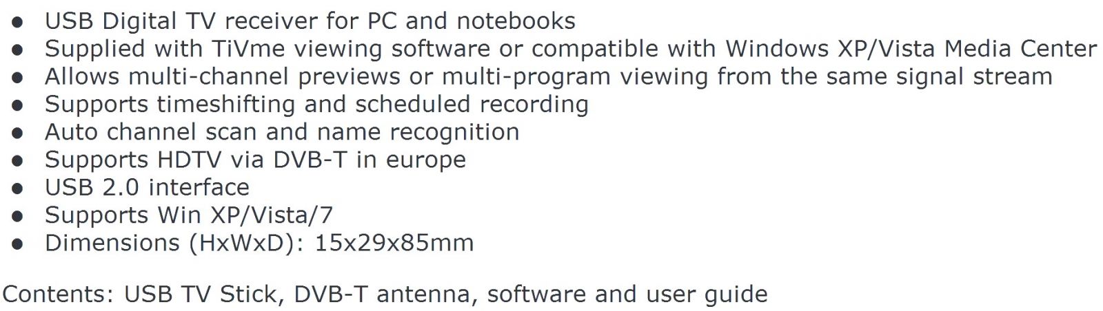 | 3292602 ממיר דיגיטלי - USB DVB-T STICK | KWORLD | ממיר דיגיטלי - USB DVB-T STICK ♦ מאפשר צפייה במספר תחנות / תוכניות בו זמנית♦ ה... Talmir Home Tech » ציוד היקפי למחשבים | כמות |