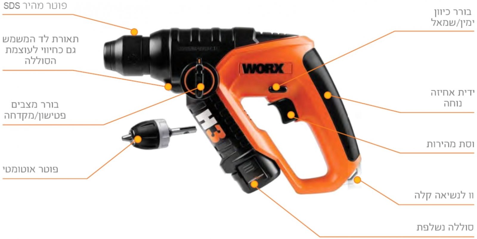 מברגה / מקדחה / פטישון נטען WORX WX382 - 12V