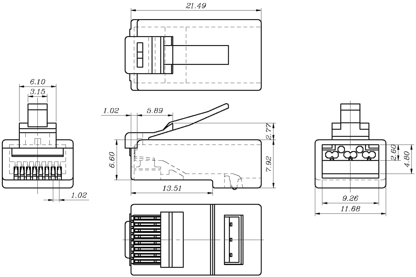 מחבר RJ45 8P8C - זכר ללחיצה לכבל - CAT6