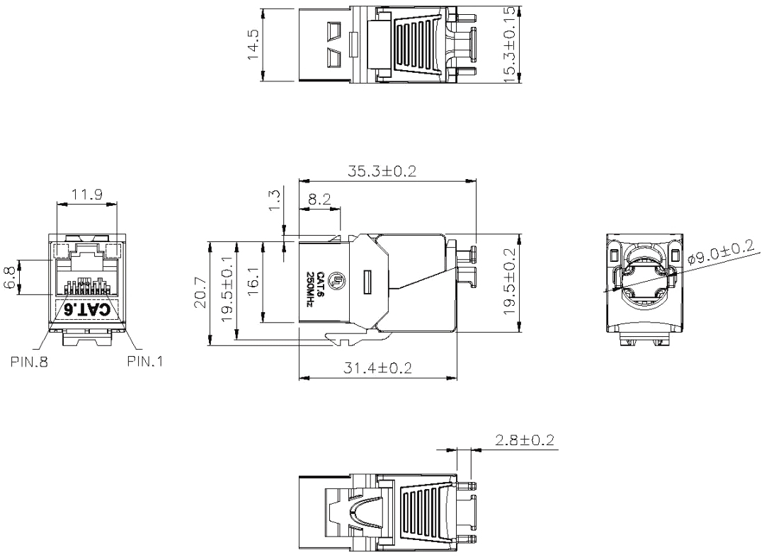 מחבר RJ45 8P8C - נקבה לנעיצה לכבל - CAT6