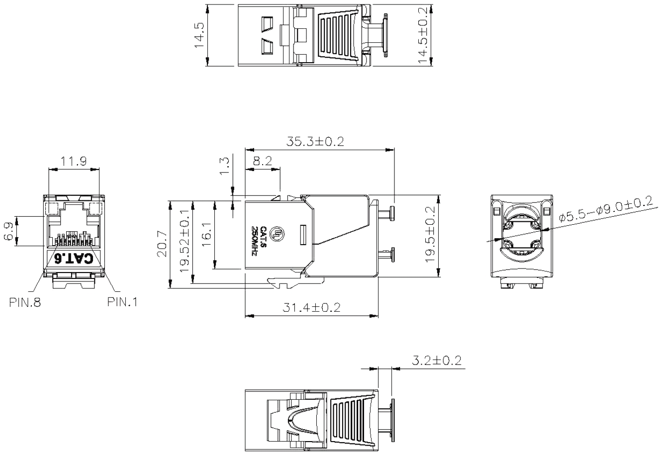 מחבר מסוכך RJ45 8P8C - נקבה לנעיצה לכבל - CAT6