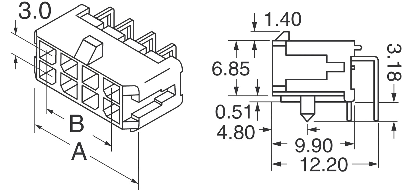 מחבר MOLEX להלחמה למעגל מודפס - סדרת MICRO-FIT - זכר 10 מגעים