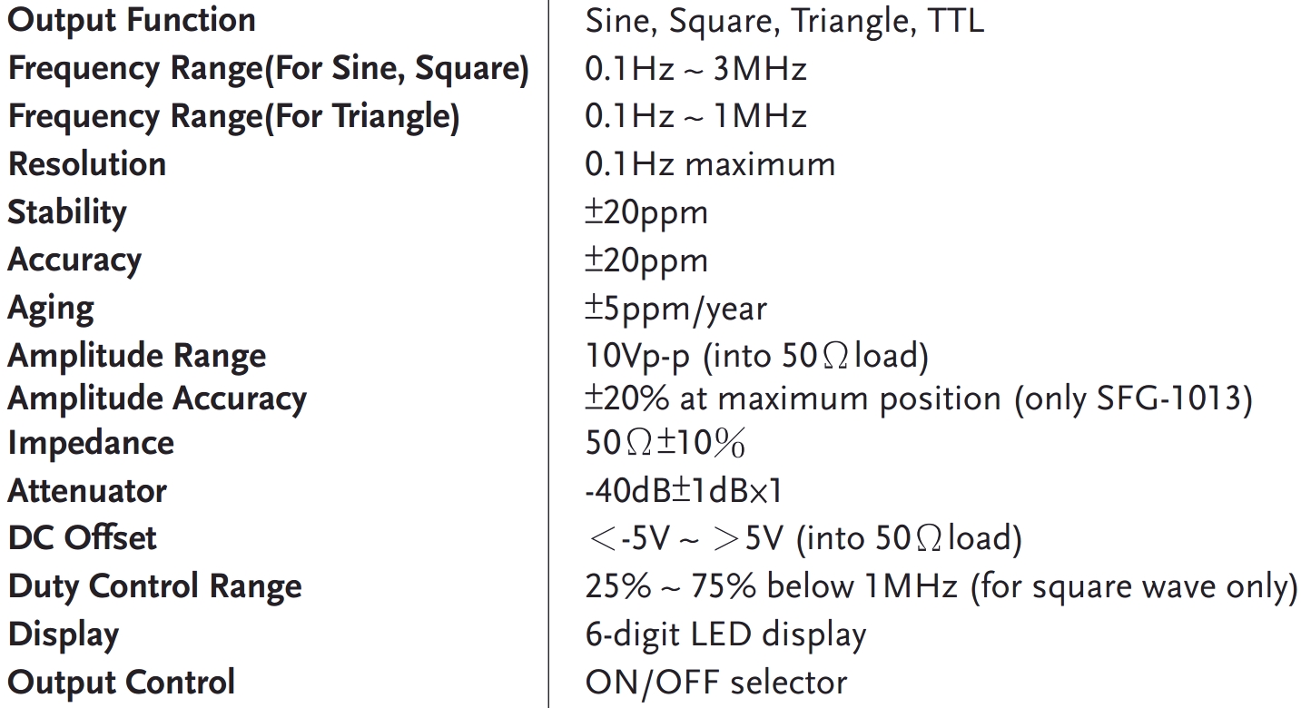 מחולל אותות שולחני - GW INSTEK SFG-1013 - 3MHZ GW INSTEK ועוד ציוד בדיקה ומכשירי מדידה. לחצו למיפרט טכני מלא. צרו קשר לייעוץ מקצועי: 04-8520233
