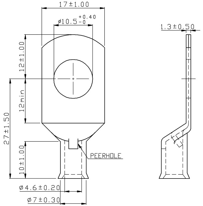 ♦ סוג נעל כבל : NON-INSULATED COPPER FLARED TUBULAR LUG