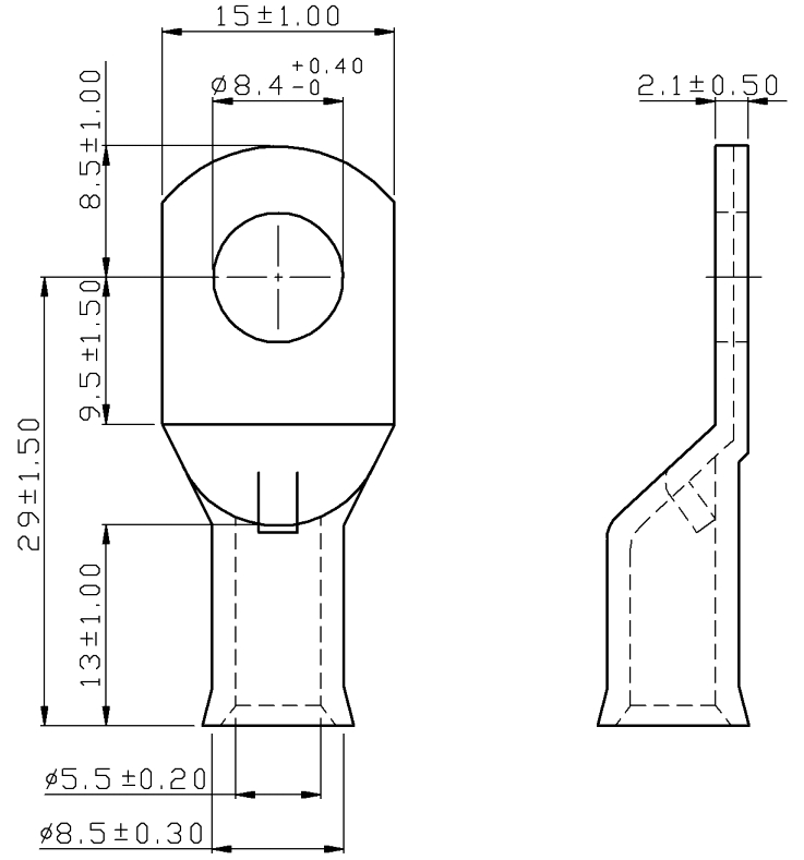 ♦ סוג נעל כבל : NON-INSULATED COPPER FLARED TUBULAR LUG