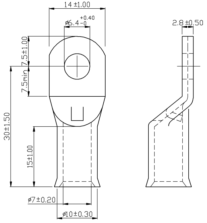 ♦ סוג נעל כבל : NON-INSULATED COPPER FLARED TUBULAR LUG