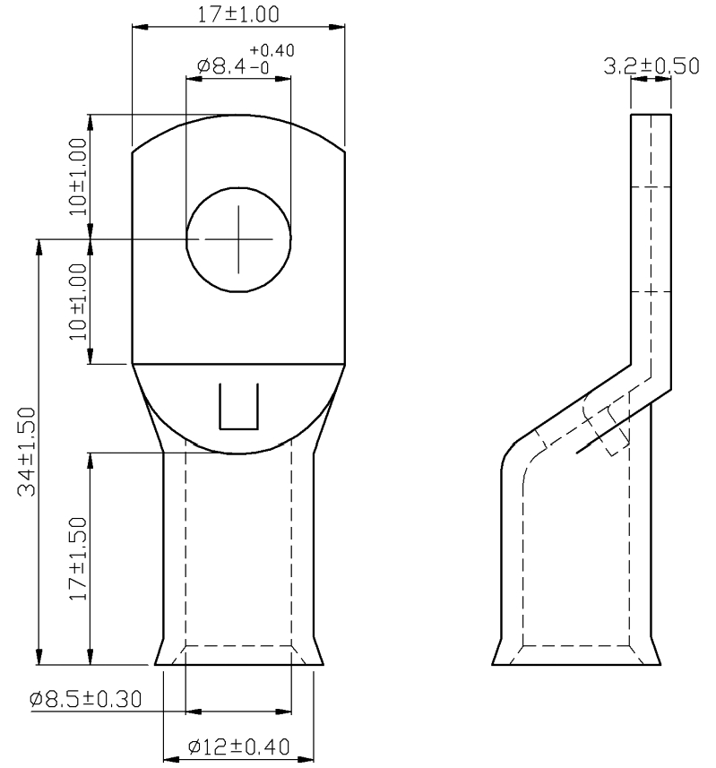 ♦ סוג נעל כבל : NON-INSULATED COPPER FLARED TUBULAR LUG