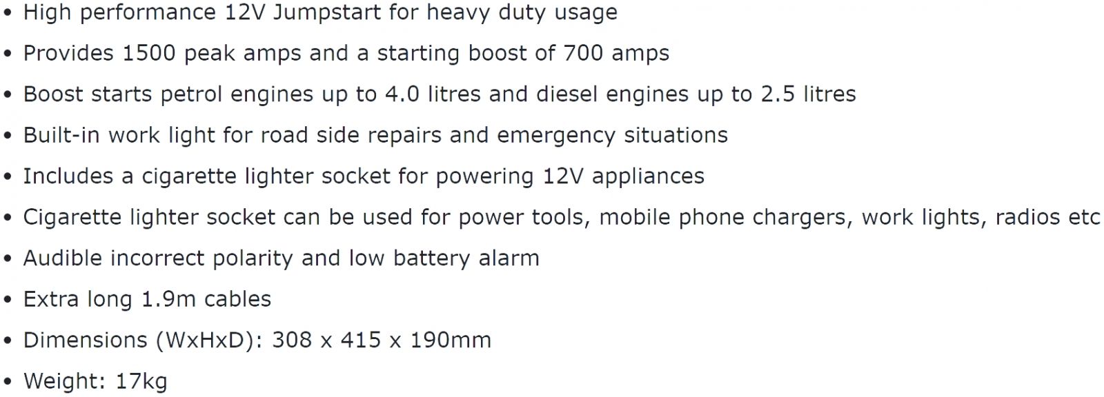 | 60540PC בוסטר מקצועי לרכב - JUMPSTART 4000 | CLARKE | בוסטר מקצועי לרכב - JUMPSTART 4000 ♦ מתאים למנועי בנזין בנפח של עד 6 ליטר♦ מתאים ל... סוללות, מצברים ומטענים » בוסטרים לרכב | כמות |