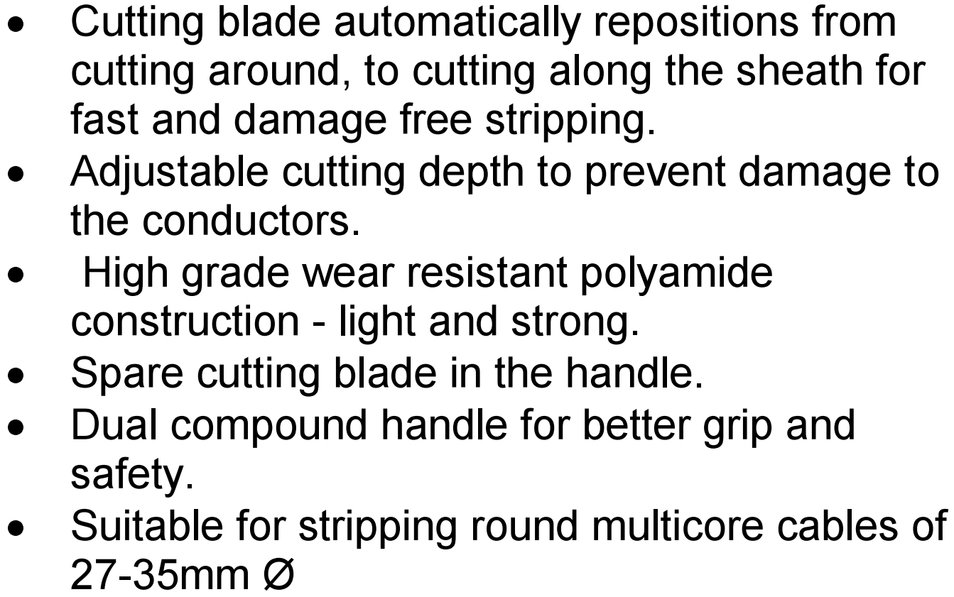 | 2482342 מסיר בידוד ג'וקרי לכבלים עגולים - JOKARI 10350 - 27MM ~ 35MM | JOKARI | מסיר בידוד ג'וקרי לכבלים עגולים - JOKARI 10350 - 27MM ~ 35MM ♦ מבנה ארגונומי לעבודה נוחה ו... כלי עבודה ידניים » מסירי בידוד לכבלים | לא ניתן להזמין - אזל המלאי |