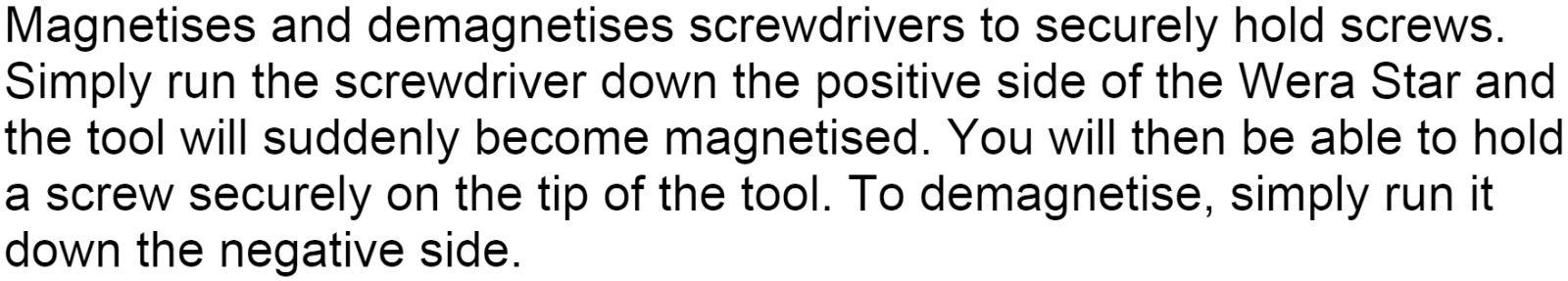 | 9599282 ממגנט / מסיר מגנוט מקצועי למברגים - WERA STAR | WERA | ממגנט / מסיר מגנוט מקצועי למברגים - WERA STAR ♦ כלי אידיאלי לטכנאי אלקטרוניקה , מחשבים וסלולר &n... כלי עבודה ידניים » מברגים לאלקטרוניקה , חשמל וסטים | כמות |