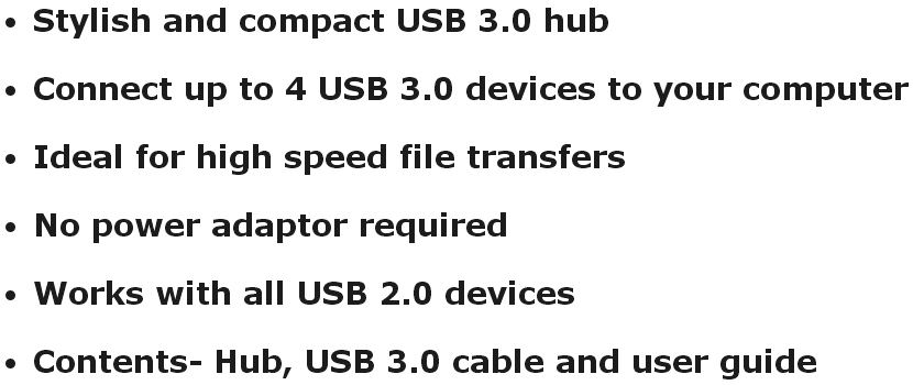 | 4075742 מפצל USB 3.0 פאסיבי עם 4 יציאות | TRUST | מפצל USB 3.0 פאסיבי עם 4 יציאות מהירות : USB3.0 5BGPSללא צורך בדרייבר - PLUG AND PLAYללא צורך ב... Talmir Home Tech » ציוד היקפי למחשבים | כמות |