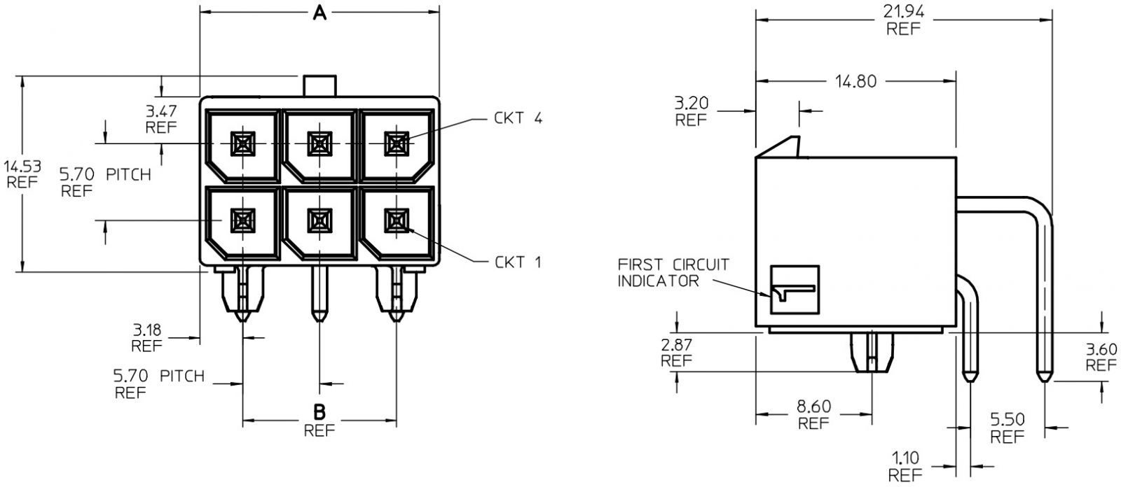 מחבר MOLEX להלחמה למעגל מודפס - סדרת MEGA-FIT - זכר 10 מגעים
