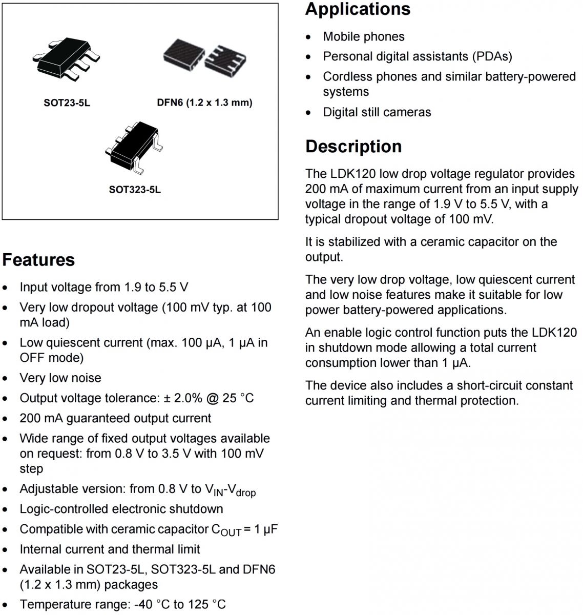 ST MICROELECTRONICS LDO VOLTAGE REGULATORS - LDK120 SERIES