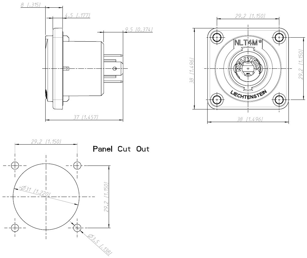 מחבר ספיקון STX - זכר לפנל - 4 מגעים - NEUTRIK
