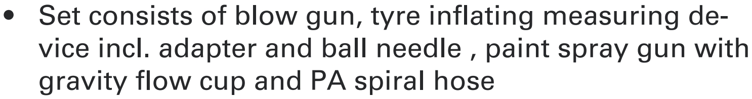 | 2952242 סט אביזרים מושלם לקומפרסור - METABO LPZ 7 SET | METABO | סט אביזרים מושלם לקומפרסור - METABO LPZ 7 SET הסט כולל : ♦ צינור לחץ אוויר ספירלי&d... כלי עבודה נטענים / חשמליים » קומפרסורים , גנרטורים ואביזרים | כמות |