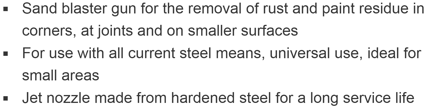 | 8852242 מרסס חול פנאומטי - אף קצר - METABO SSP 1000 | METABO | מרסס חול פנאומטי - אף קצר - METABO SSP 1000 ♦ צריכת אוויר : 300L/MIN♦ לחץ אוויר : 7BAR... כלי עבודה נטענים / חשמליים » קומפרסורים , גנרטורים ואביזרים | כמות |
