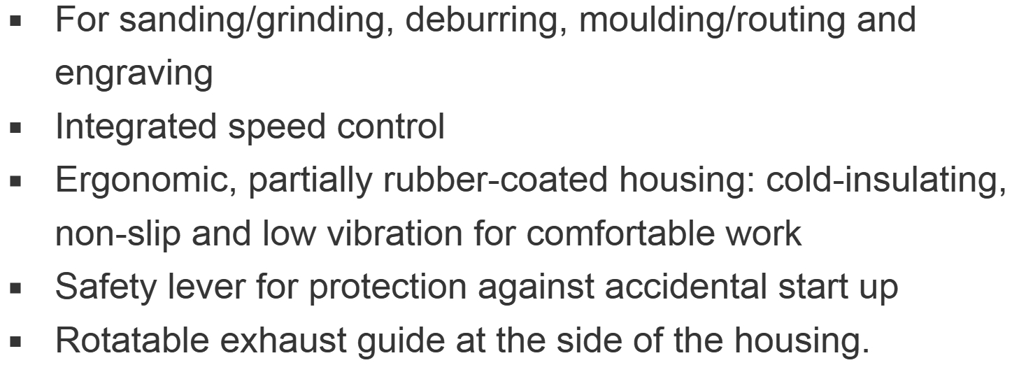 | 4108232 משחזת ציר פנאומטית - METABO DG 25 | METABO | משחזת ציר פנאומטית - METABO DG 25 ♦ לחץ עבודה : 6.2BAR♦ צריכת אוויר : 300L/MIN♦... כלי עבודה נטענים / חשמליים » קומפרסורים , גנרטורים ואביזרים | לא ניתן להזמין - אזל המלאי |
