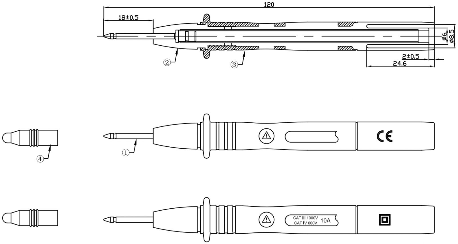 ♦ מתח מקסימלי : CAT III 1000V , CAT IV 600V