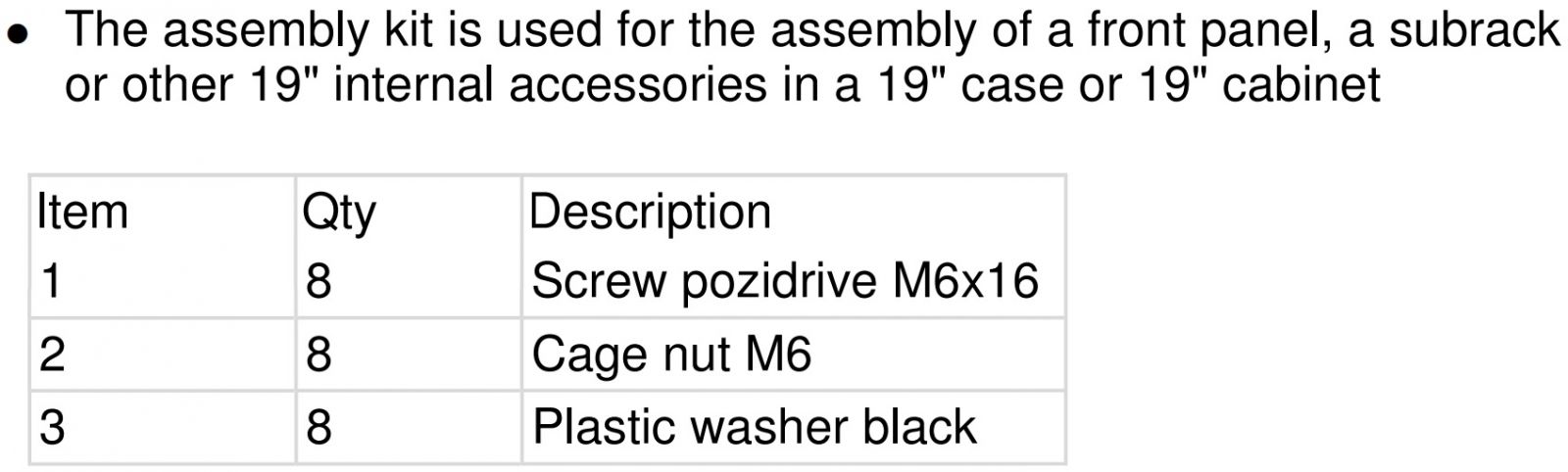 | 5930731 קיט פרזול להרכבת למארז 19 אינץ' - 24 חלקים | SCHROFF | קיט פרזול להרכבת למארז 19 אינץ' - 24 חלקים ... פתרונות זיווד לאלקטרוניקה » מארזים 19 אינץ' ואביזרים | כמות |