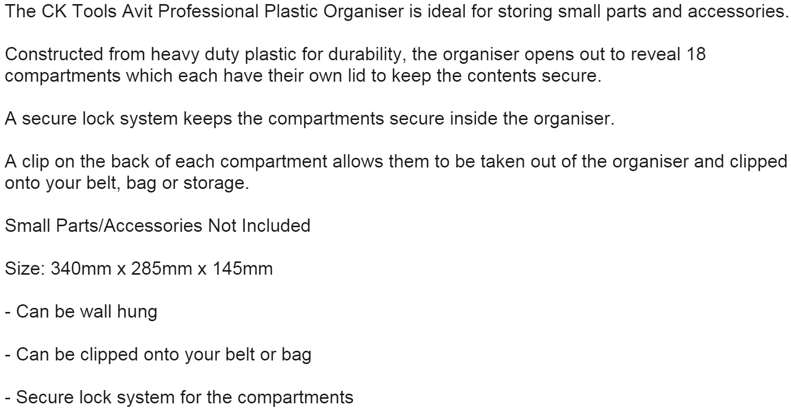 | 7923742 מערכת ניידת לאחסון רכיבים - 18 תאים | AVIT | מערכת ניידת לאחסון רכיבים - 18 תאים ♦ מנגנון בטיחות למניעת פתיחת התאים♦ תפסן ח... ארגזי כלים ופתרונות אחסון » פתרונות אחסון ושינוע לרכיבים וכלי עבודה | לא ניתן להזמין - אזל המלאי |