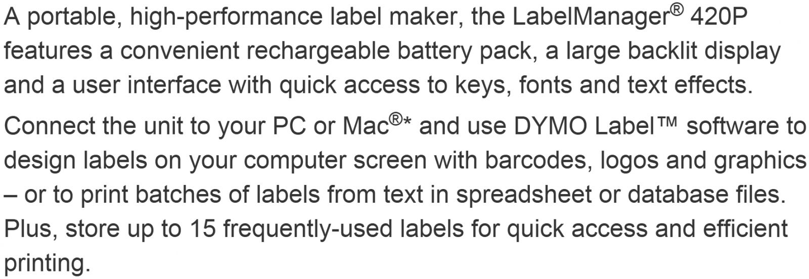 | 4748502 מדפסת מדבקות ניידת LABEL MANAGER 420P - DYMO | DYMO | מדפסת מדבקות ניידת LABEL MANAGER 420P - DYMO ♦ סימון מקשים : לועזית ומספרים♦ פ... כבלים ואביזרים לכבלים » מדפסות DYMO למדבקות והפקת תגיות | כמות |