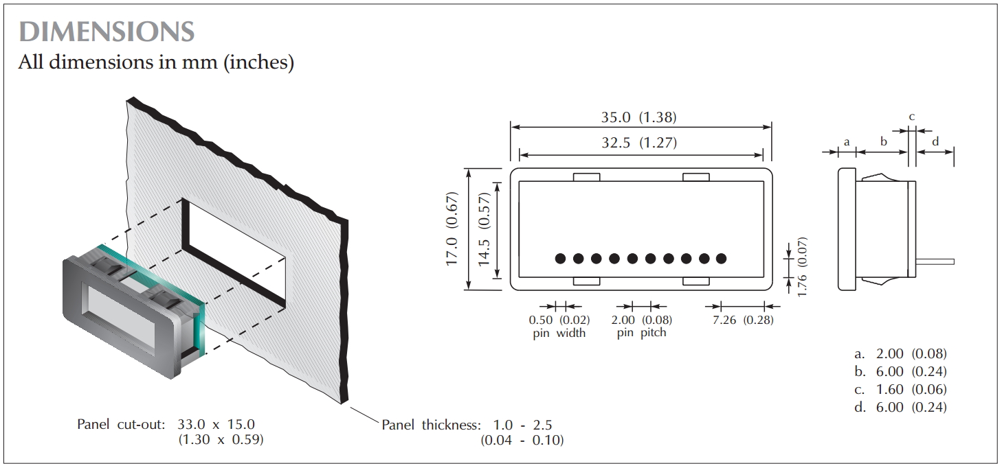 מד תצוגה (פנל מטר) דיגיטלי - 3.5 ספרות - 8.25MM - DC VOLTAGE LASCAR ועוד רכיבי חשמל ובקרה. לחצו למיפרט טכני מלא. צרו קשר לייעוץ מקצועי: 04-8520233