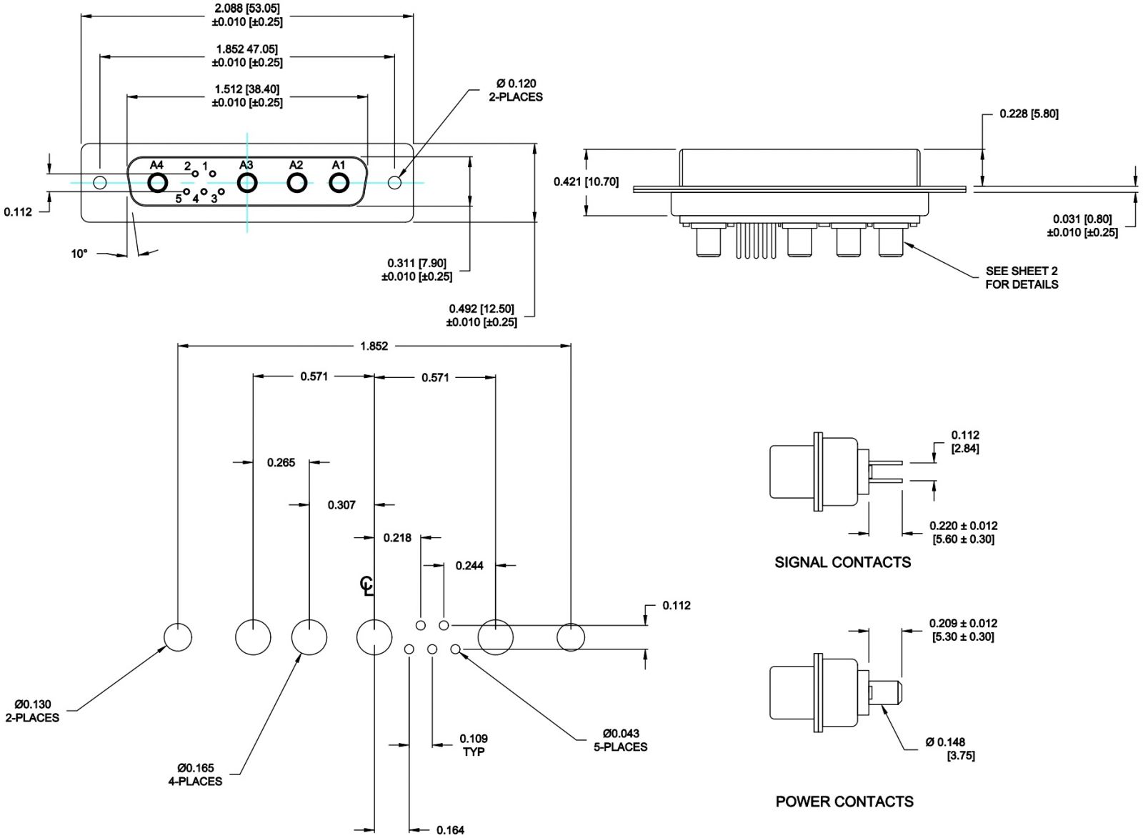 ♦ 5 מגעים SIGNAL לזרם מקסימלי של 5A (כבל 20AWG)