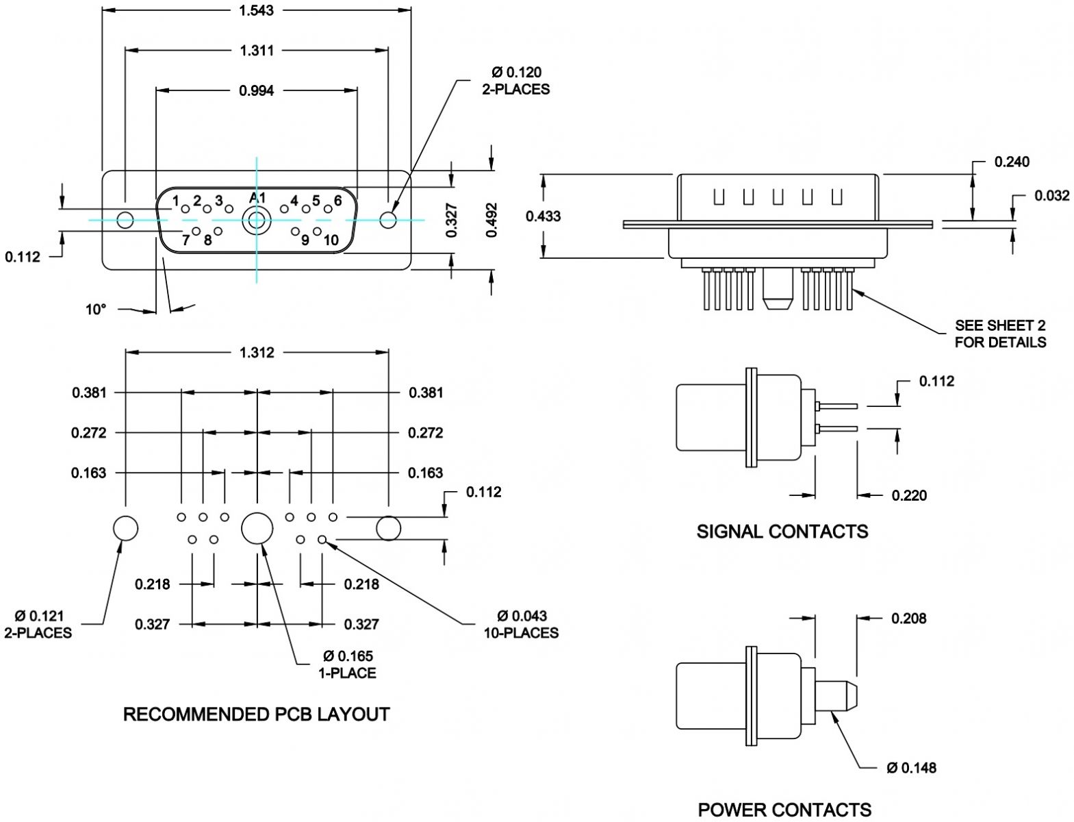 מחבר D-TYPE COMBO IP67 - זכר למעגל מודפס - 40A - DA-11W1