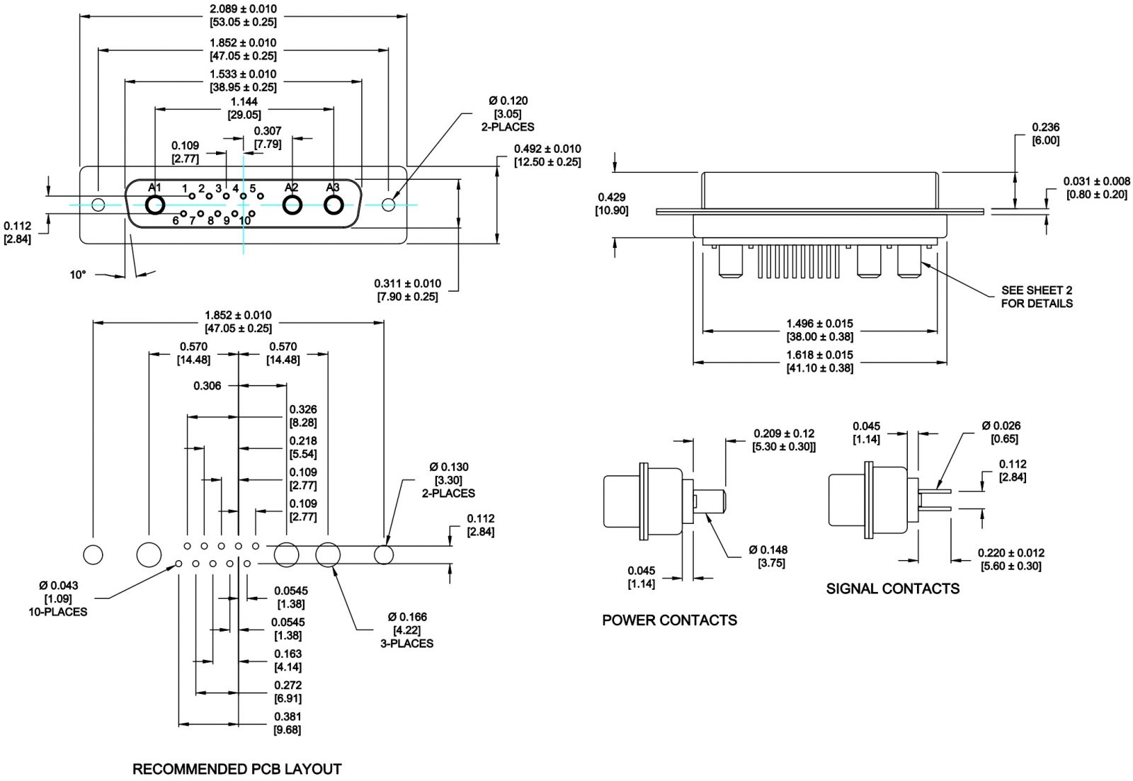 מחבר D-TYPE COMBO IP67 - נקבה למעגל מודפס - 40A - DB-13W3