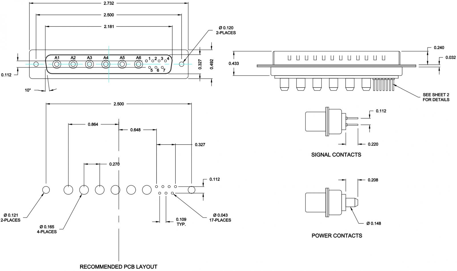 מחבר D-TYPE COMBO IP67 - זכר למעגל מודפס - 40A - DB-13W6